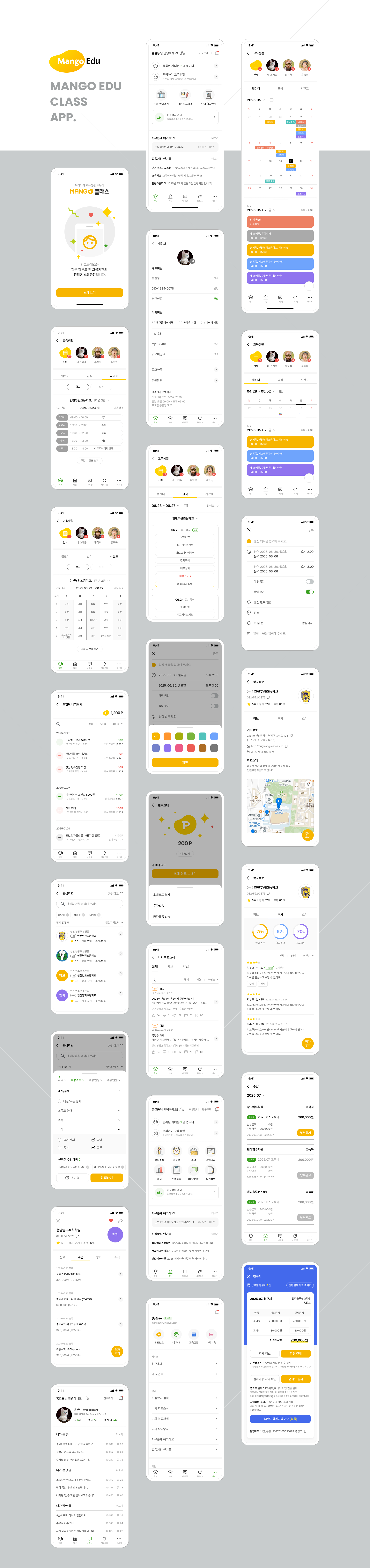 학생/학부모/선생님이 함께 사용하는 학사행정 통합 플랫폼으로서, 한 화면에 보이는 많은 양의 정보들을 최대한 심플하고 정돈된 화면과 함께 높은 가독성을 추구하였다.
